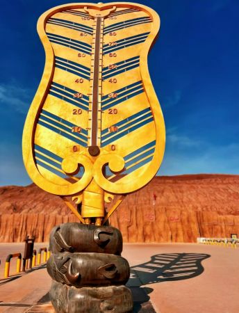 火焰山位于新疆維吾爾自治區(qū)吐魯番市高昌區(qū)312國道,是國家AAAA級景區(qū)和國家地質公園,于2018年4月13日入圍“神奇西北100景”?;鹧嫔綄俚湫偷拇箨懶愿珊祷哪畾夂?,是北緯42°在線世界唯一的熱火爐,具有日照長、氣溫高、晝夜溫差大、降水少、風力強等特點。全年平均氣溫為14℃,夏季平均氣溫在30℃