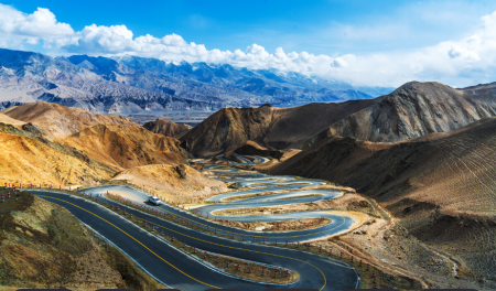 08:00-12:00? ?前往瓦恰盤龍古道,盤龍古道位于喀什地區(qū)塔什庫爾干塔吉克自治縣瓦恰鄉(xiāng)境內(nèi),當(dāng)?shù)亟型咔」?,全部盤山公路超過600個彎道全長75公里,海拔約4100米左右,黑色公路與土色山體的完美配合,加上遠(yuǎn)處連綿的雪山,這只屬于帕米爾高原;